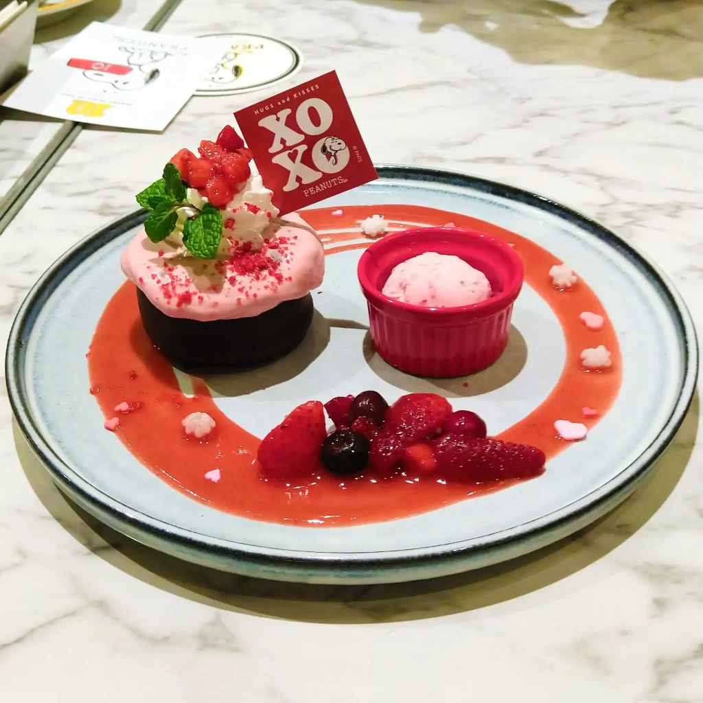 PEANUTS DINERでランチを食べた後に期間限定で提供されているバレンタインの時期らしいかわいいスイーツも注文して味わってきました。