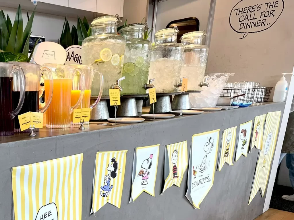 ドリンクが置かれているカウンター。ドリンクビュッフェをセットでつけてコーヒなどおかわりをしました。炭酸入りの味付きの素敵なお水も美味しいです。